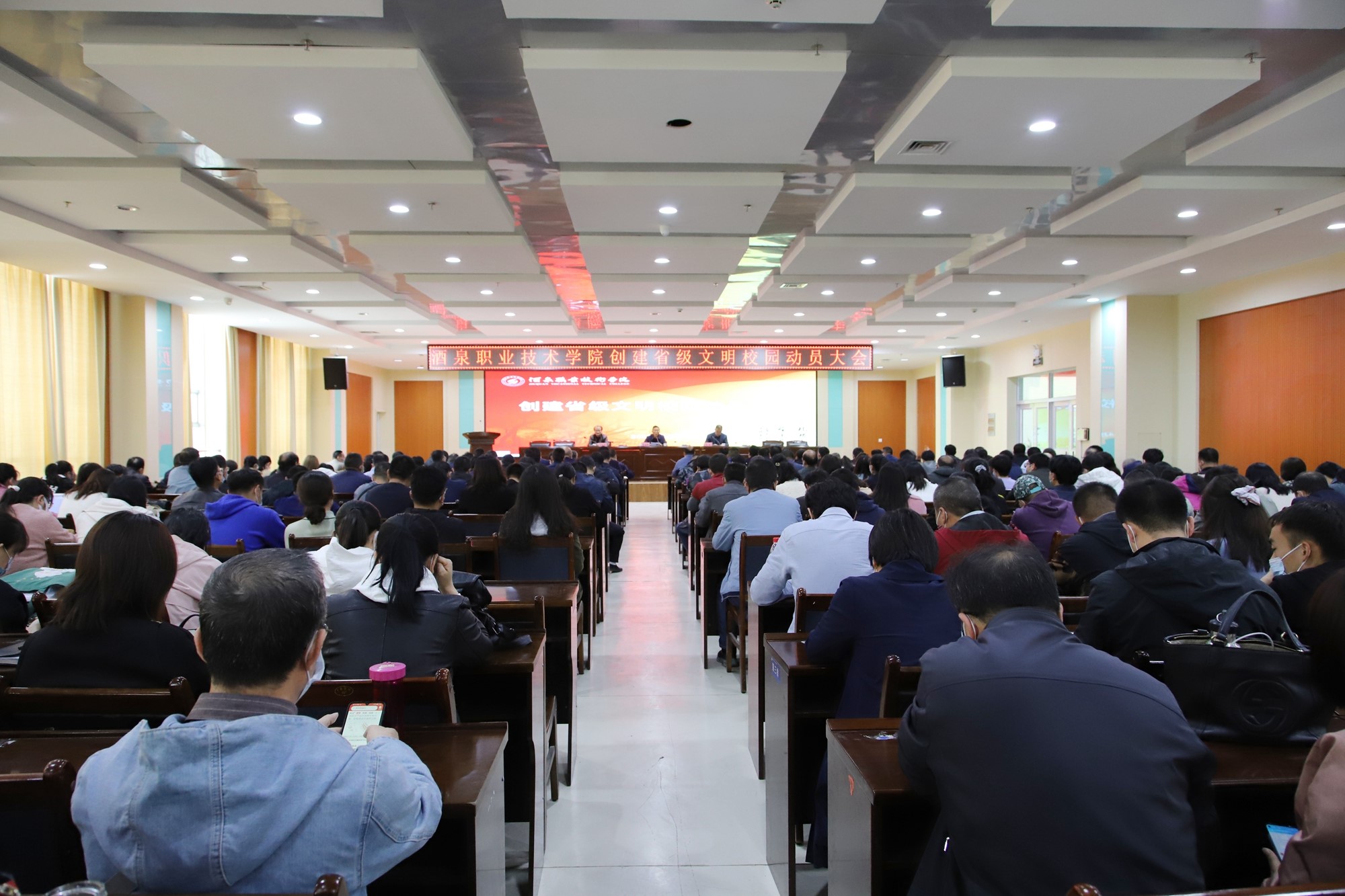 为贯彻落实习近平新时代中国特色社会主义思想和党的十九大精神,大力培育和践行社会主义核心价值观,扎实推动学校文明校园创建活动,根据甘肃省教育厅、省精神文明建设指导委员会关于创建省级文明校园的相关文件精神,学院将申报创建省级文明校园。召开动员大会,主要任务是对省级文明校园创建工作进行再动员、再部署,把学校党委的声音、态度和决心直接传到全校上上下下,凝聚全校力量,以必胜的决心,实战的状态,扎实的工作,确保打赢省级文明校园创建这场硬仗。
