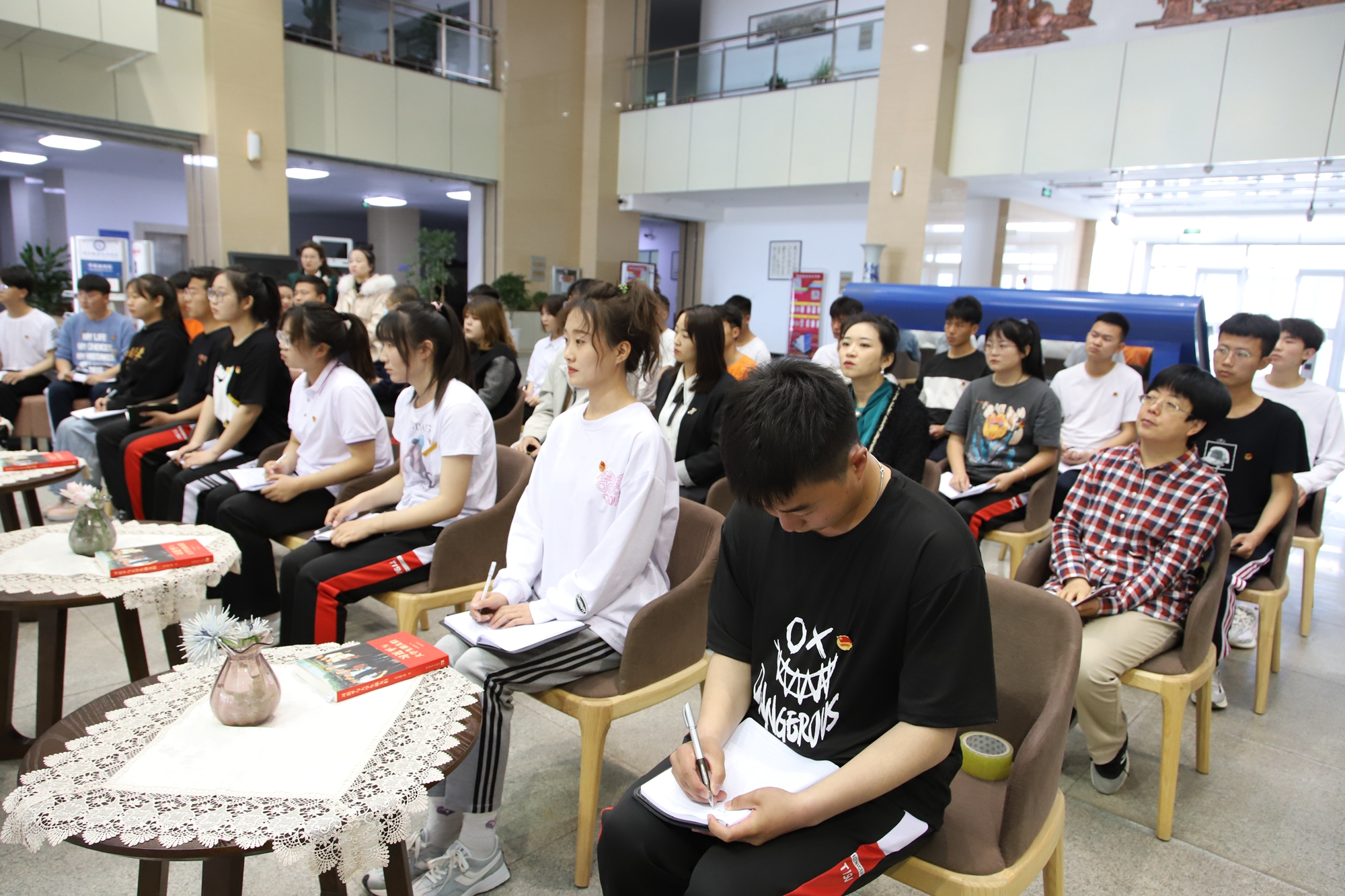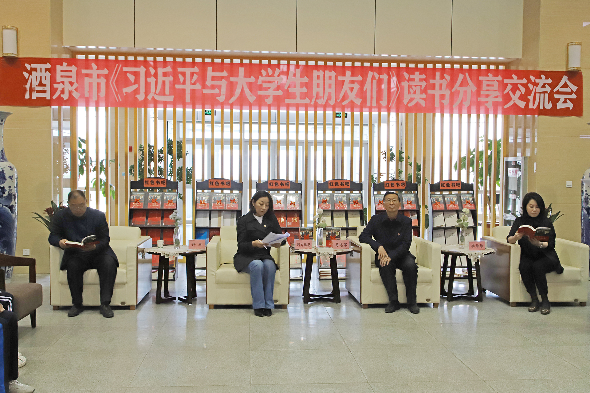 为贯彻落实习近平新时代中国特色社会主义思想,引导青年学生原原本本阅读、真真切切领悟、实实在在践行,4月29日,共青团酒泉市委、酒泉职业技术学院联合举办《习近平与大学生朋友们》读书交流分享会。团市委书记阿力腾花,教育部书画等级考试甘肃省河西考区考试中心办公室主任李维维,学校党委书记、校长易志军,学校党委副书记许军出席会议。学校团委负责人、团干部、青年教师代表、学生代表参加了分享会。